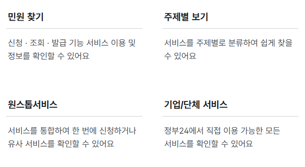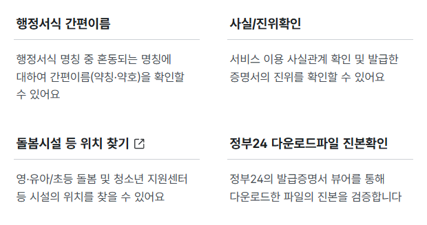 알고 보면 정부24 전용 서비스들이 따로 존재합니다. 다음 3가지는 다른 공공 사이트에선 찾을 수 없는 핵심 기능입니다.