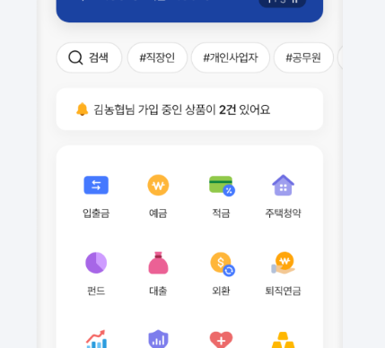 > 사업자 법인용, 농협의 모바일 버전 격